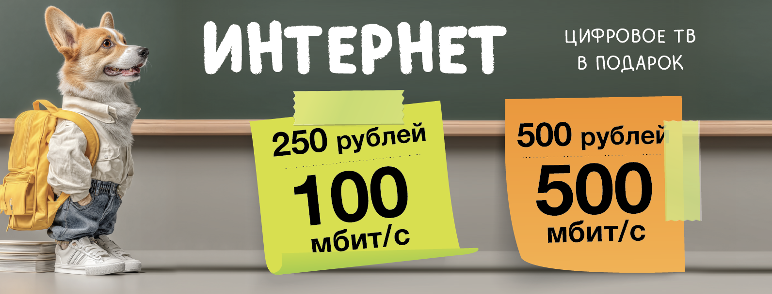100 Мбит/сек 5 месяцев по 250 руб. – авансовый платеж минимум 1250 руб., с 6 месяца подключается тариф «Домашний»